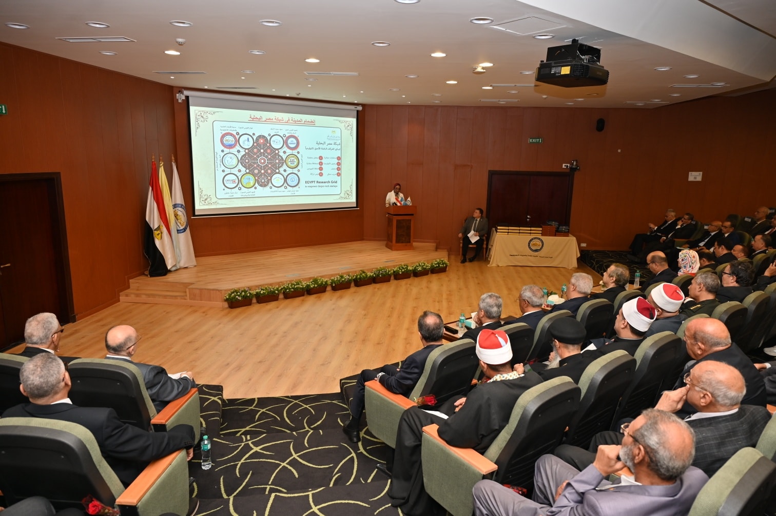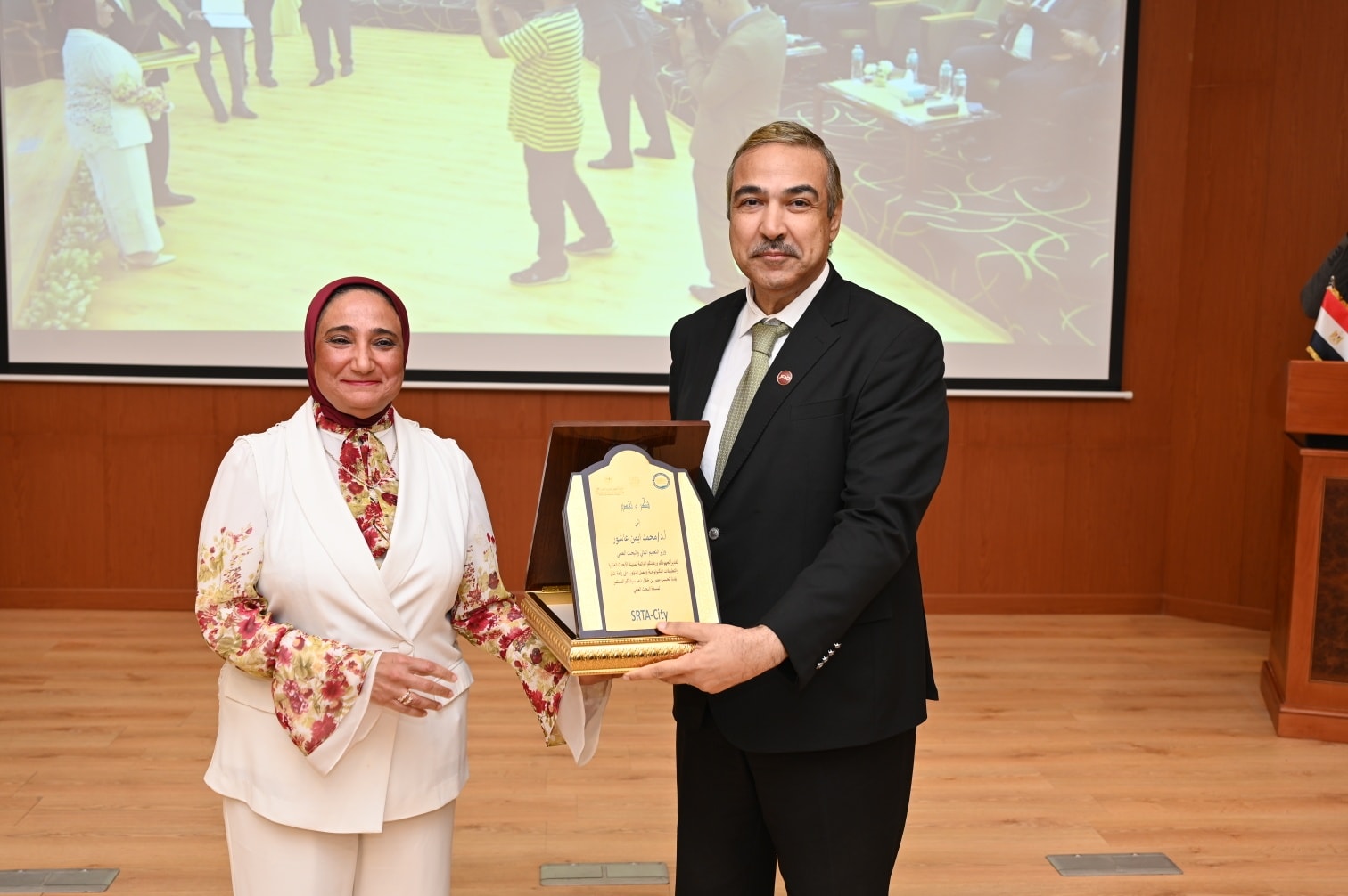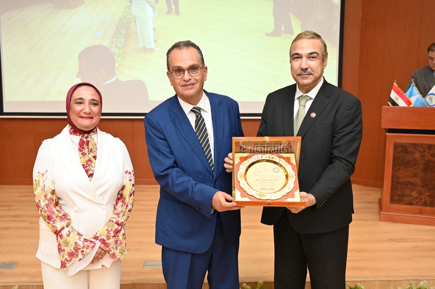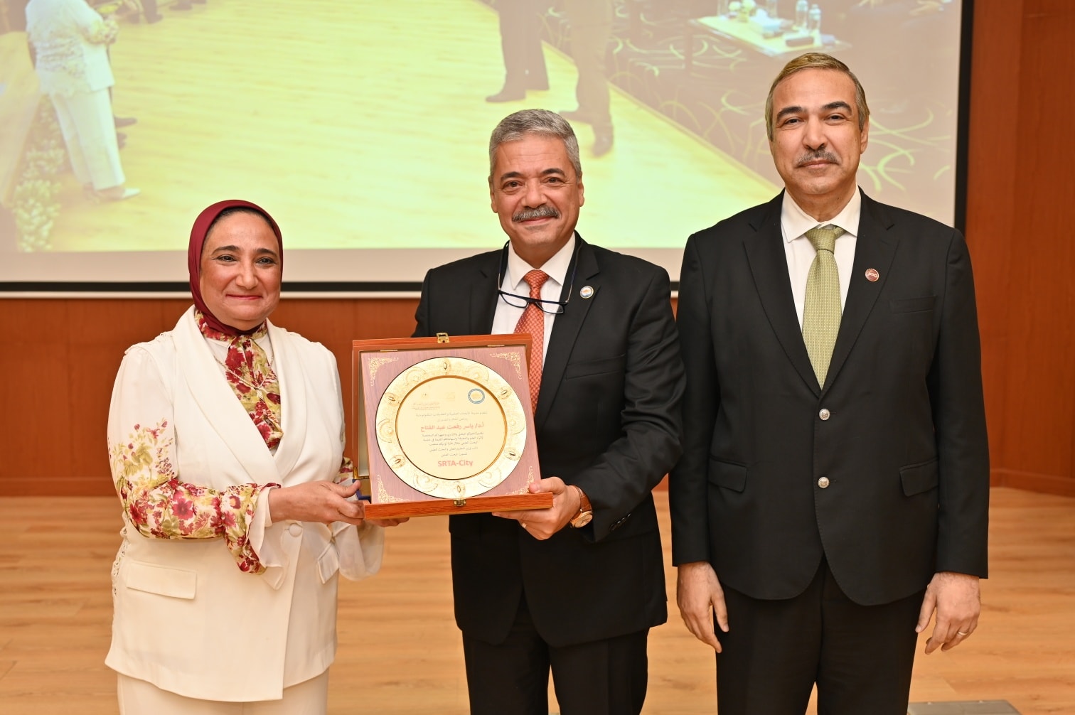 The celebration was attended by Prof. Dr. Hossam El-Din Saleh Othman, Deputy Minister of Higher Education and Scientific Research for Innovation and Scientific Research Affairs; Prof. Dr. Walaa Mohamed Sheta, CEO of the Science, Technology, and Innovation Funding Authority; Prof. Dr. Mohamed Rashad Abdel Fattah, Deputy Director of SRTA-City for Scientific and Research Affairs; as well as many presidents of research centers and universities, vice-presidents of research centers and universities, representatives from the Armed Forces, former directors of SRTA-City and their representatives, deans of the city’s research institutes, several chairpersons of industrial companies, and a wide number of researchers and faculty members from different research centers and universities.